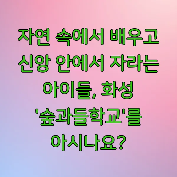 만약 우리 아이가 흙을 만지고 땀 흘리며 생명의 소중함을 배우고, 친구들과 머리를 맞대어 문제를 해결하며 더불어 사는 법을 익히고, 자연의 변화를 온몸으로 느끼며 자라난다면 어떨까요? 여기, 교과서 대신 자연을, 경쟁 대신 따뜻한 공동체를 선택한 특별한 학교가 있습니다. 바로 경기도 화성에 위치한 기독교 대안학교, 숲과들학교 입니다.